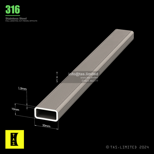 20 X 10 X 1.2 RECTANGULAR BOX SECTION, RHS, 316 STAINLESS STEEL, DULL POLISHED (1.4401 / 1.4404)