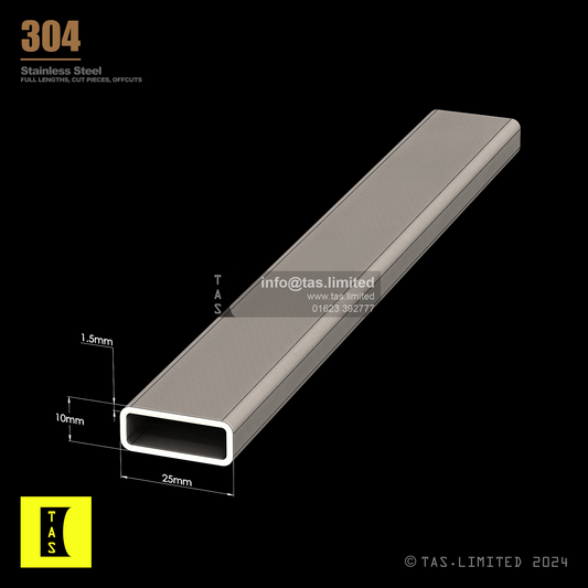 25 X 10 X 1.5 RECTANGULAR BOX SECTION, RHS, 304 STAINLESS STEEL, DULL POLISHED (1.4301 / 1.4307)
