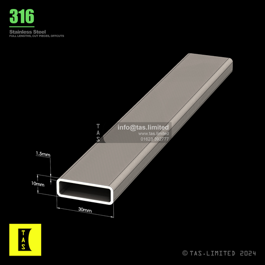 30 X 10 X 1.5 RECTANGULAR BOX SECTION, RHS, 316 STAINLESS STEEL, DULL POLISHED (1.4401 / 1.4404)