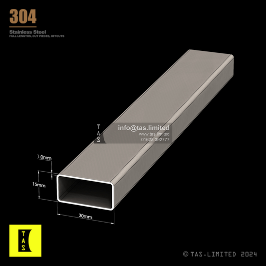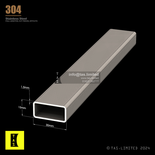 30 X 15 X 1.5 RECTANGULAR BOX SECTION, RHS, 304 STAINLESS STEEL, DULL POLISHED (1.4301 / 1.4307)