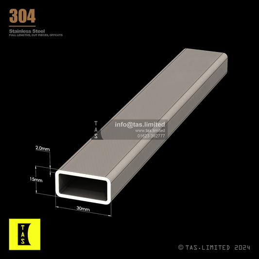 30 X 20 X 1.5 RECTANGULAR BOX SECTION, RHS, 304 STAINLESS STEEL, DULL POLISHED (1.4301 / 1.4307)