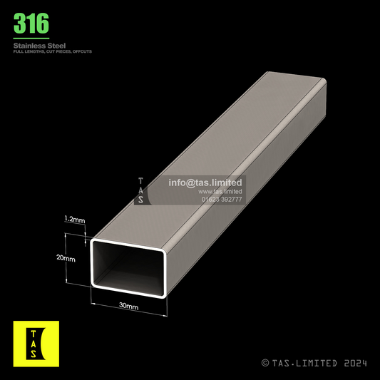 30 X 20 X 1.2 RECTANGULAR BOX SECTION, RHS, 316 STAINLESS STEEL, DESCALED (1.4401 / 1.4404)