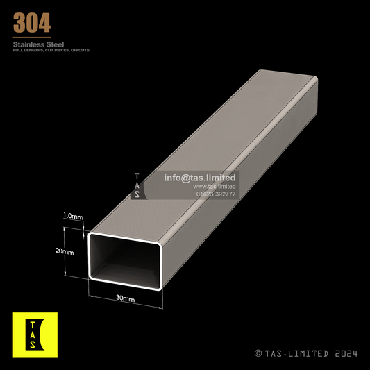 30 X 20 X 1.2 RECTANGULAR BOX SECTION, RHS, 304 STAINLESS STEEL, DESCALED (1.4301 / 1.4307)