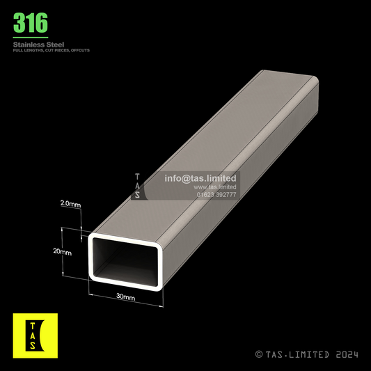30 X 20 X 1.5 RECTANGULAR BOX SECTION, RHS, 316 STAINLESS STEEL, DULL POLISHED (1.4401 / 1.4404)